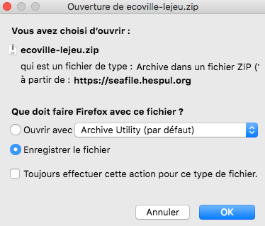 d'exploitation. Installez-le dans le dossier "Ecoville-lejeu"